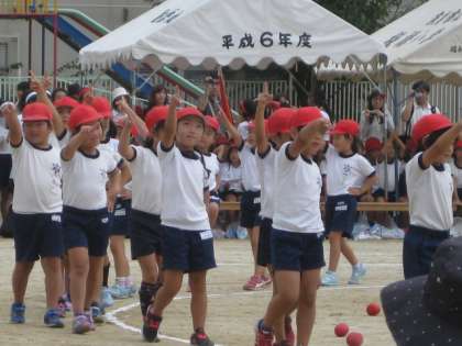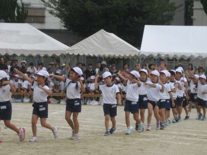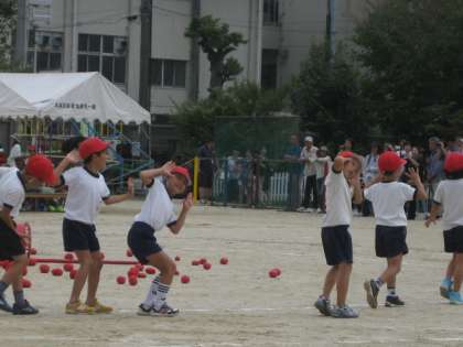 1年生の団体競技は例年玉入れです。可愛らしいダンスを踊りながら入場してきました。