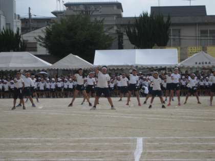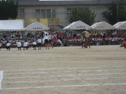 午後の初めのプログラムは,応援合戦です。運動会当日まで,昼休みも自主的に集まって練習していました。どちらの組も,息の合った素晴らしい応援でした。