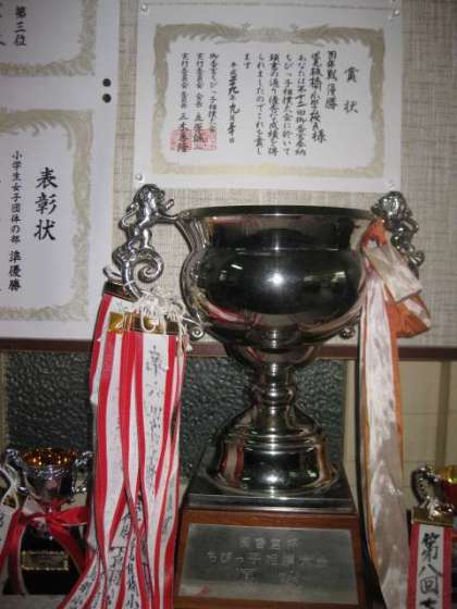 子どもたちの頑張りで,大きなトロフィーをいただきました。相撲部の入っている子どもたちは,日頃から一生懸命に稽古をして強くなっています。残念ながら,負けてしまった子どもたちも,普段出さないような力を出せたのではないでしょうか。