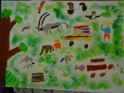 学級によって,取り組む絵が違います。この学級では,いろいろな動物が登場していました。