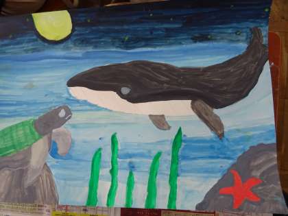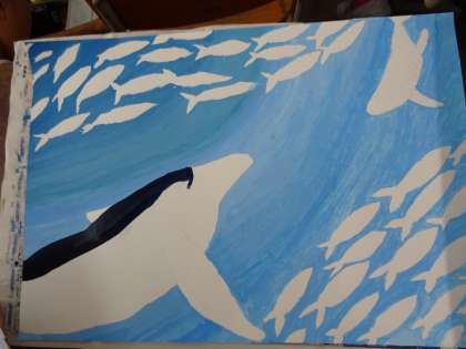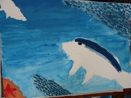 海水の流れや動きを表現するために,絵の具の濃淡や色使いを工夫していました。