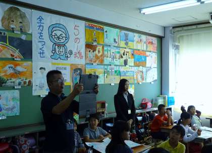発表の様子を担任の先生がタブレット端末を使って録画していました。