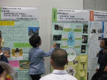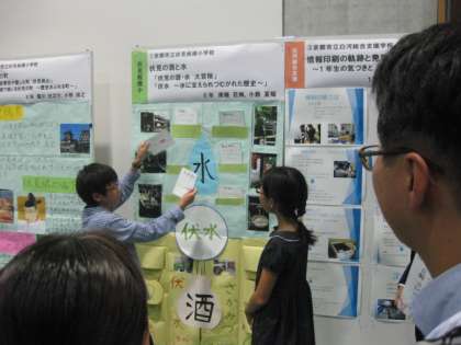 本校の子どもたちの作ったポスターは,平面に文字が書いてあるだけではなく,紙を1枚めくったら下からクイズの答えが出てきたり,より詳しい説明がみられたりしました。説明のしゃべり方も大変上手で,他校の先生方も驚いておられました。