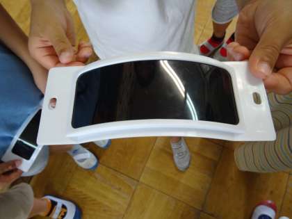 かげができている時に,太陽がどこにあるのかを遮光板を使って調べました。