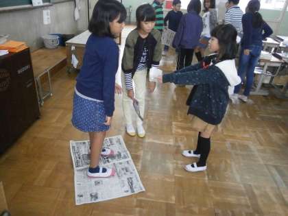 そんな雨の日に4年生は新聞紙を使って遊んでいました。