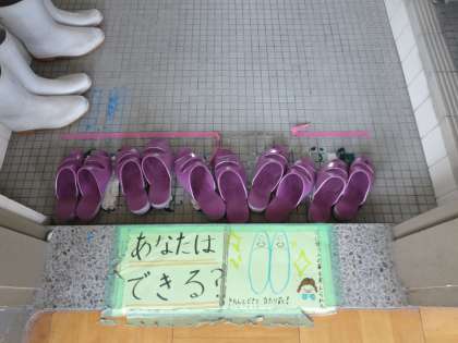 子どもたちに,話をすると,自分たちで何とかしようという思いが芽生え,今では進んでチェックをし,常にスリッパがそろっている状態です。