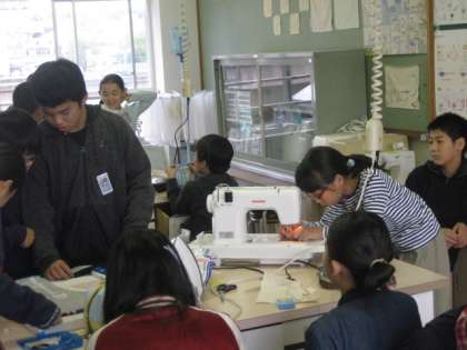 6年生が家庭科室でミシン縫いをしています。最近ご家庭でミシンを使われますか?「作るより買った方が安いし,時間をとらない」というような声が聞こえてきそうですが,自分で作った物のよさも捨てがたいです。自分の用途に応じた物を作れると本当に嬉しいものです。そして,使い心地がいいものですね。