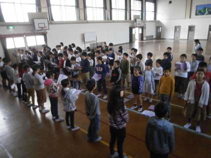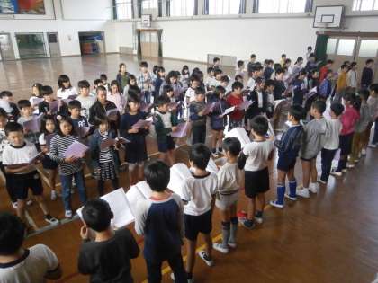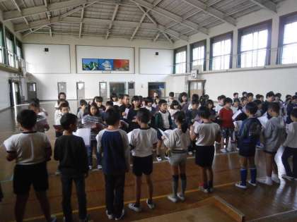 4年生はみさきの家に向けて体育館でキャンプファイヤー練習をしました。