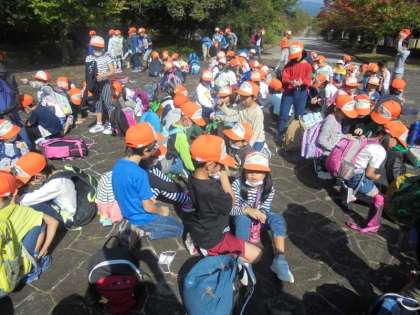 爽やかな秋晴れの空の下,秋の遠足に行ってきました。宝が池周辺の木々はきれいに色づき始めていました♪