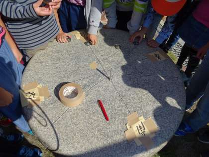 太陽が東の空から上がり,南の高い空を通って西へ動くことを実験を通して理解しました。