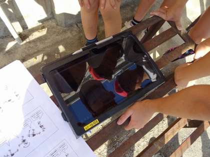 今年度導入されたタブレット端末を使って,技のポイントを学習しています。