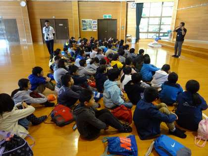 プレイホールに移動し,みさきの家の職員の方からのオリエンテーリングを行いました。