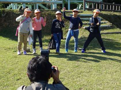 チェックポイント「山の砦」で,グループ写真撮影を行いました。