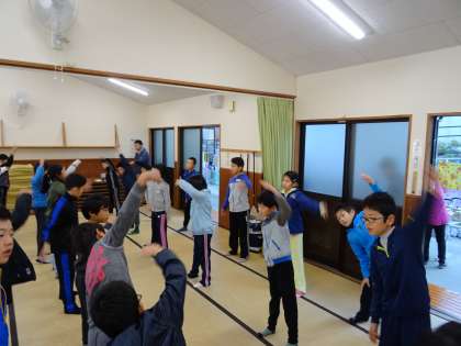 最終日の朝のつどいです。準備体操をしっかりと行いました。