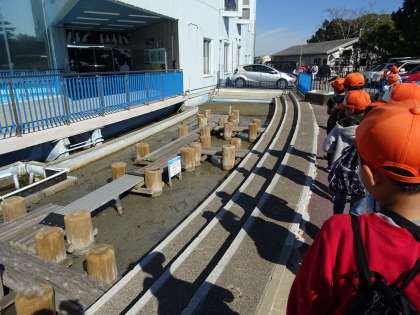 志摩マリンランドへ到着しました。これから2グループに分かれて,体験活動をします。