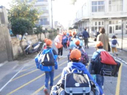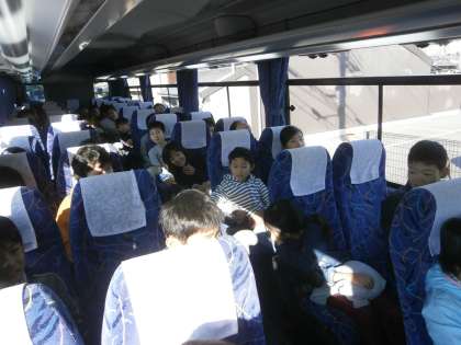 大きな荷物をバスに入れ,いざバスに乗り込みます。
