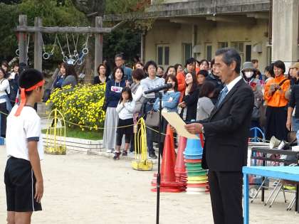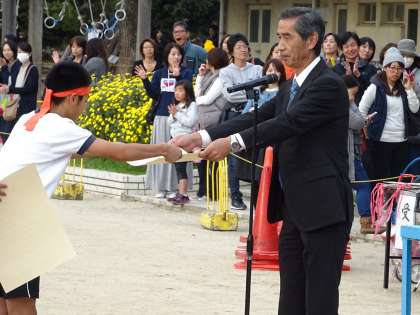 代表の児童が,表彰状を受け取りました。
