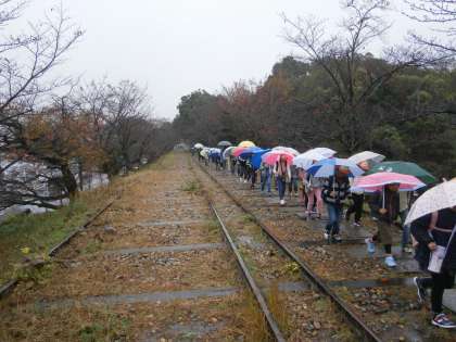 まず蹴上駅で降り,「ねじりまんぼ」を見て,インクラインを上がっていきます。