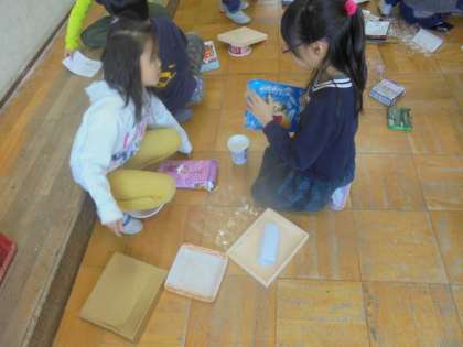 生活科の学習で動くおもちゃづくりに挑戦しています。