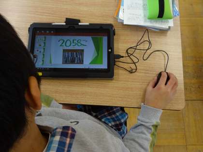 この日は高学年児童がタブレット端末を使っての発表の練習をしていました。