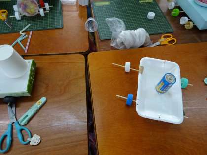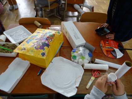 身の回りの廃材を使っておもちゃ作りを進めています。