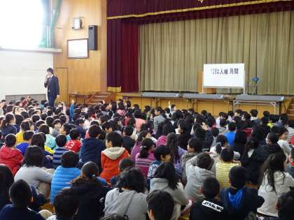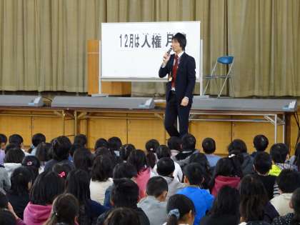 12月は人権月間です。全校児童へ教頭先生から人権についてのお話がありました。