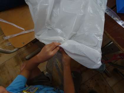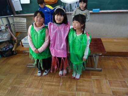 学習発表会で使う衣装作りをしています。素敵な服ができあがりました。