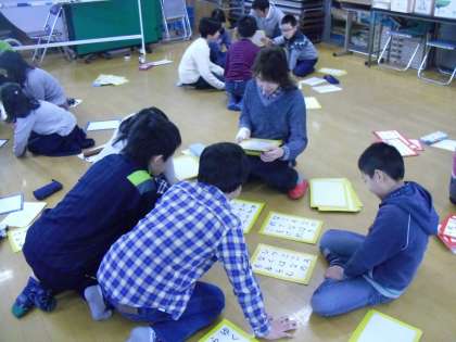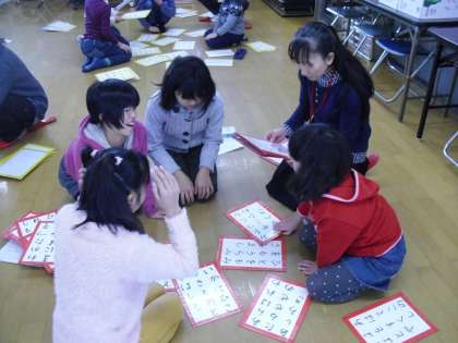 学校運営協議会のみなさんにお世話になり,百人一首に取り組みました。どのグループの子どもたちもとても熱中していました!何度も参加している子は,上の句を聞いただけで,下の句をとることができていました。
