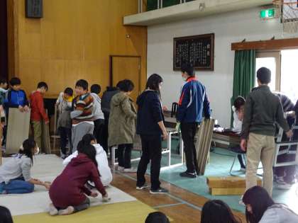 放課後,6年生児童と教職員で学習発表会の前日準備を行いました。さすが6年生。あっという間に準備ができました。