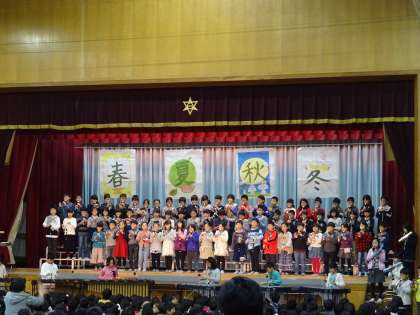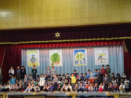 3年生の国語科「春 夏 秋 冬」です。四季折々の歌を中心に,季節感を感じさせる発表でした。