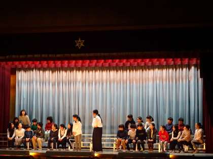 生き方探究劇「月夜にえがく夢」です。社会科の学習で学んだ当時の歴史的背景や事実を表情豊かに再現しました。