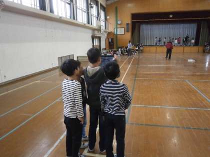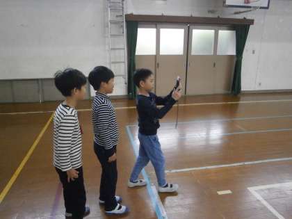 子どもたちはタブレットパソコンを持って写真を撮ります。