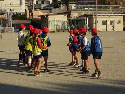 友達と協力して,相手チームとの対戦を楽しんでいます。