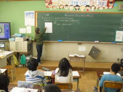 算数の学習で分数について学習しています。本日は1Lマス図から,どのように数を表せるかの学習をしました。