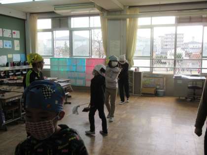 次に,はたきを使って教室や廊下を掃除しました、