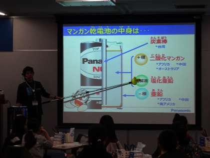 次は手づくり乾電池教室です。自分だけの「マンガン乾電池」づくりに挑戦です。