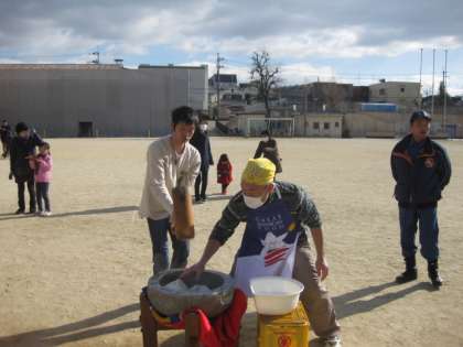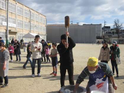 昨日より下準備をされ,今日も早くから準備をされて,年末恒例のお餅つきが開催されました。少年補導委員会をはじめ,多くの地域の団体の方々の協力によって開催されています。本校の子ども達もつきたてのお餅を堪能しました。