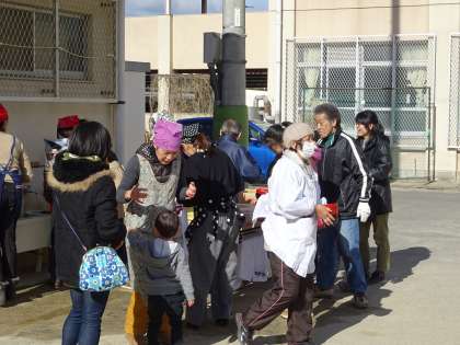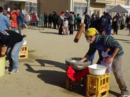 地域の方のご協力により,つきたてのおもちを使ったお雑煮やぜんさい,きなこもちが振る舞われました。