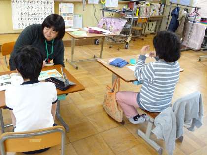 計算問題に挑戦しています。先生のアドバイスを活かして,学習に取り組んでいます。