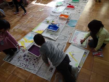 いろいろな用具を使って,形をうつして作品作りをしています。