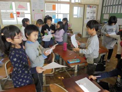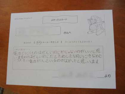 おもちゃで遊んだ後は,友達のおもちゃや遊びのルールについての工夫を見つけてカードに書き交換し,笑顔が溢れていました。