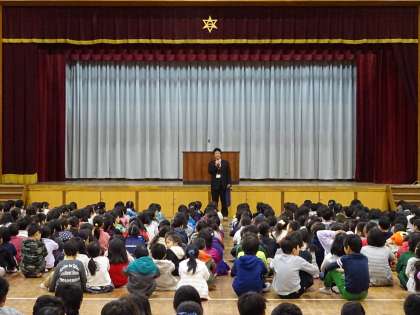 冬休み前最後の朝会です。校長先生から目標についてのふり返りについて,お話がありました。