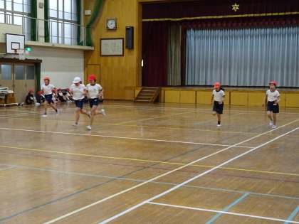 5年生は悪天候のため,体育館でシャトルランに取り組みました。記録から,自分に合ったペースを身に付けてほしいと思います。