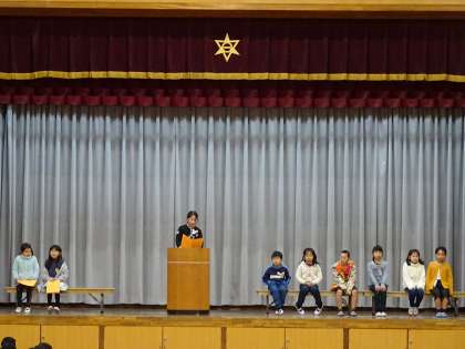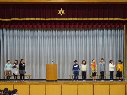 1月の児童朝会の様子です。まず,2年生の発表を行いました。