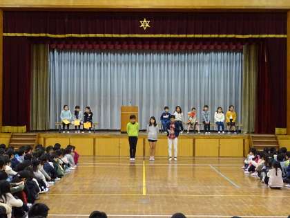 2年生は学習発表会で行った国語劇「スイミー」についての作文の発表を行いました。