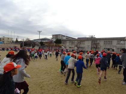 中間ランニングを開始しました。どの子どももペースをつかもうと,頑張って走っていました。