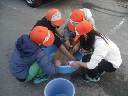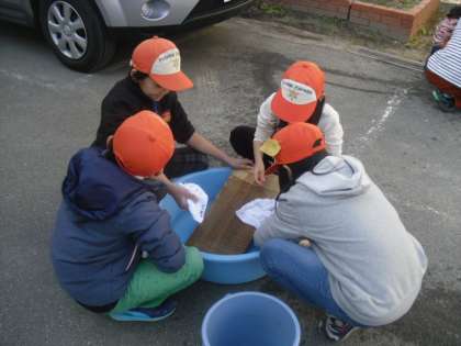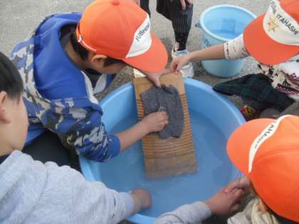昔を伝えるもの単元で,洗濯板体験をしました。体験を通して,昔の道具についてどんどん学んでいってほしいです。