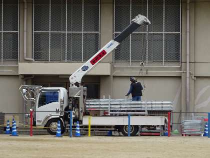 屋根の塗装工事が完了し,撤去した足場の搬出をされました。