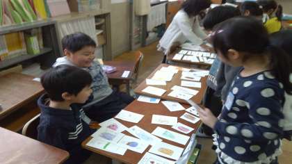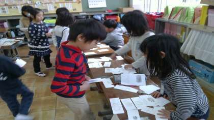 国語では「ものの名まえ」の学習をしました。まとめてつけた名前や一つ一つの名前があることを学習し,そのまとめとしてお店屋さんごっこをしました。看板や品物を作り,ていねいな言葉で上手に買い物をしていました。