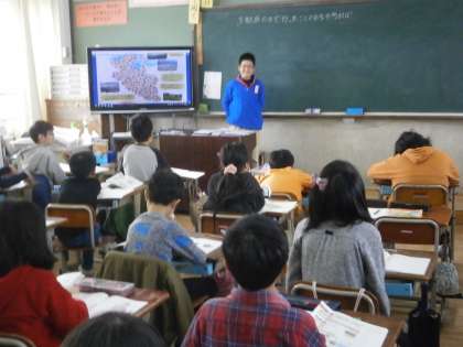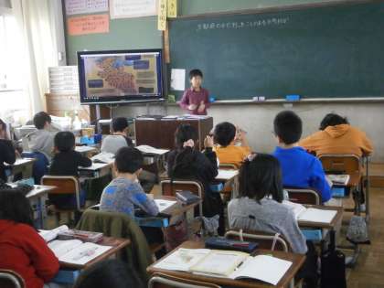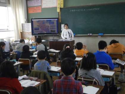 自分が行ったことがある場所をパソコンに丸をしながら発表しています。